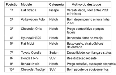🔍 Observação: a presença de hatches e SUVs segue dominando, mas a Fiat Strada continua soberana — e isso influencia diretamente o mercado de usados.