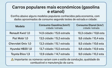 Consumo de carros populares: gasolina ou álcool, o que compensa em 2025?