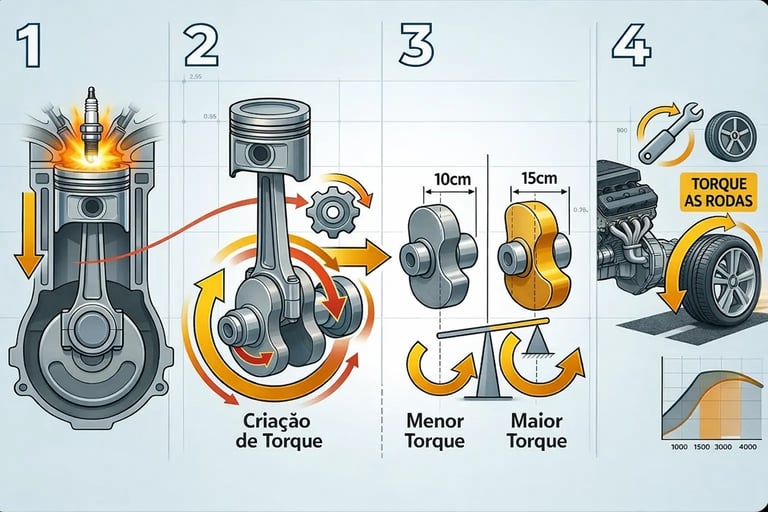 Esse processo mostra o que é torque do motor de forma técnica, mas aplicada à realidade.