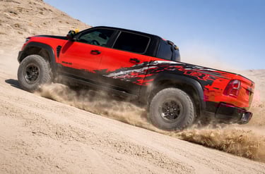 A Ram 1500 TRX Bloodshot não esconde sua proposta. O visual mais largo, alto e agressivo já deixa claro que ela foi feita para enfrentar situações que a maioria das picapes evita.